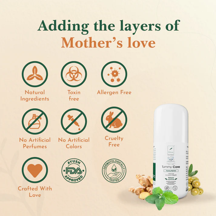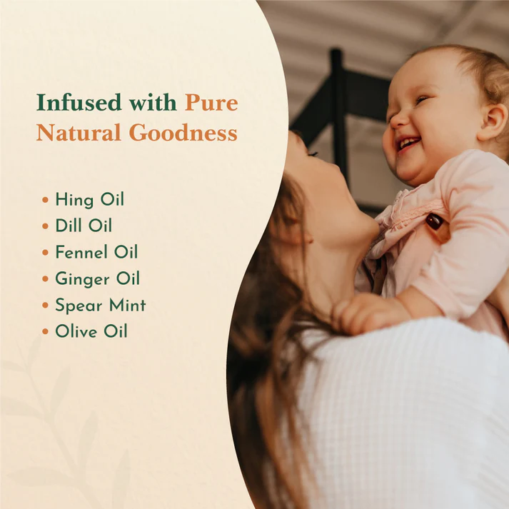 Velura’s Tummy care is specially formulated for relieving colic and flatulence effectively. It relieves colicky pain, gas, and bloating effectively with a blend of soothing and digestive oils. It is designed to provide quick and gentle relief for your baby’s digestive discomfort, ensuring a happy and comfortable baby.