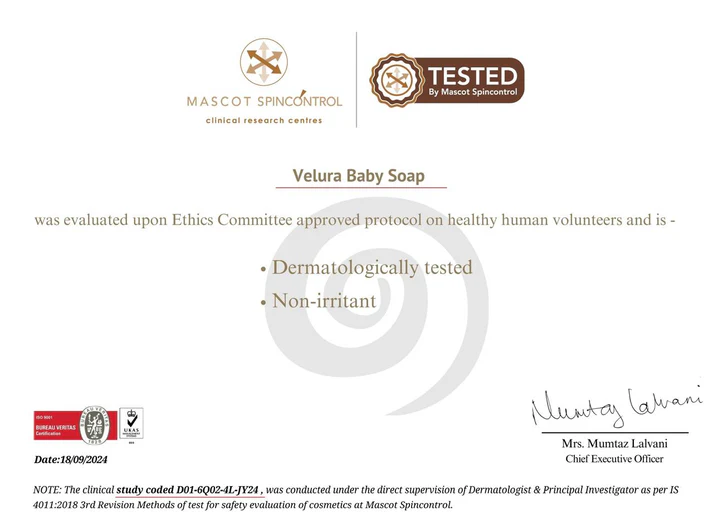 “Velura’s fragrance-free, hypoallergenic formulations are clinically safe, effective, and perfectly suited for newborn and sensitive baby skin.”